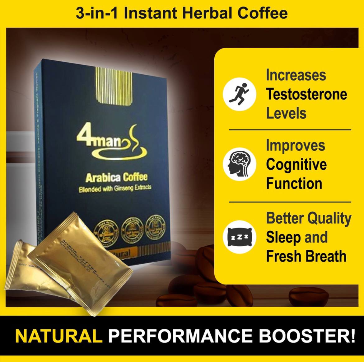 4ManzCoffee provides natural benefits for mood enhancing, testosterone modulating, stamina longetivity, improved intimate relationships, healthy blood flow circulation and most importantly improved sexual performance